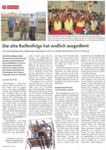 - Eine Glocke reist nach Afrika – Die Cäcilienglocke aus Freiburg läutet heute in Ikuti (Tansania)Die profanierte Kirche St. Elisabeth im Freiburger Stadtteil Zähringen beherbergte einst eine Cäcilienglocke, deren Weiterverwendung nach der Profanierung lange ungewiss war. 2014 entstand durch die …