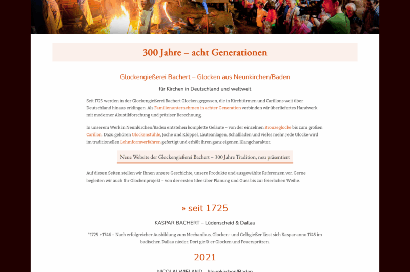 Unsere Website bachert-glocken.de ist grundlegend überarbeitet worden. Inhaltlich erweitert, technisch auf den neuesten Stand gebracht und mit einem klaren, responsiven Layout versehen, bietet sie …