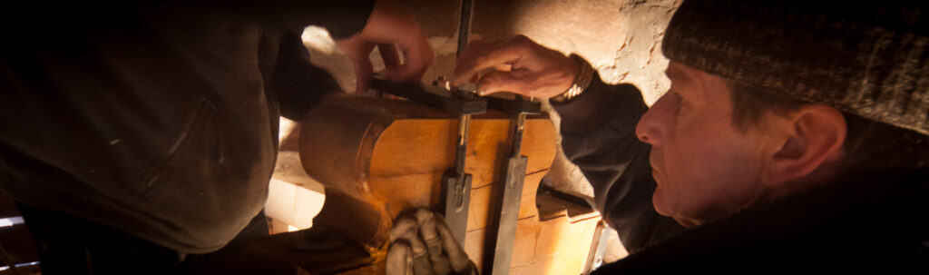 Joch und Klöppel haben entscheidenden Einfluss auf Klang und Langlebigkeit einer Glocke. Wir fertigen Holzjoche – in der Regel aus massivem Eichenholz – sowie freiformgeschmiedete Klöppel, exakt abgestimmt auf Gewicht und Dimension der Glocke. So entsteht ein stimmiges Ensemble aus Musikinstrument und Technik.
